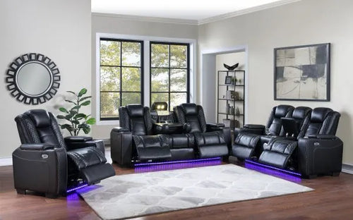 Black Reclining Sofa Set 3 PC Set -
